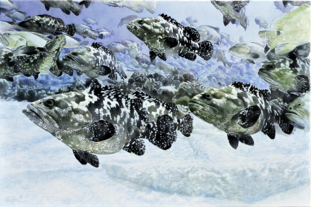Le mérou constitue un point d’ancrage important dans cette recherche. Son mode de vie, marqué par la fluidité des rôles sexuels, l’absence de hiérarchie reproductive, la coopération interspécifique et l’adaptation constante à l’environnement, offre un modèle biologique et politique particulièrement pertinent. Cette biologie non normative, stable sur des millions d’années, interroge nos représentations culturelles de la nature, du genre et de la productivité. Elle permet d’aborder la biodiversité non seulement comme un enjeu de conservation, mais comme une source de modèles alternatifs d’organisation du vivant.