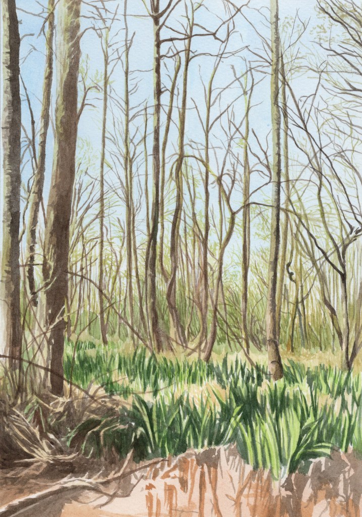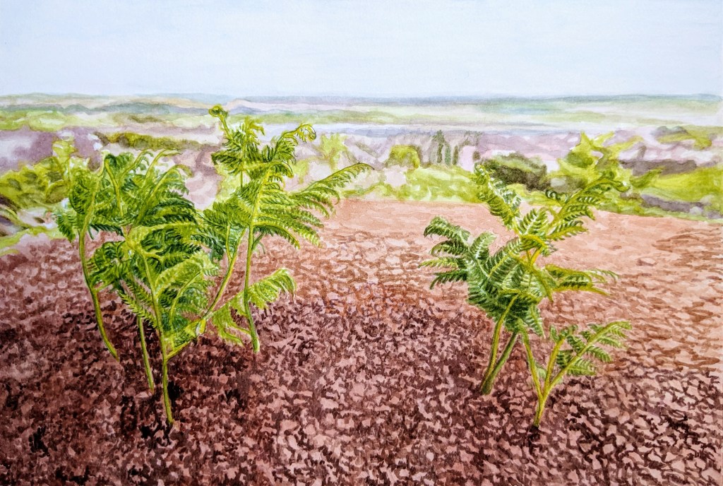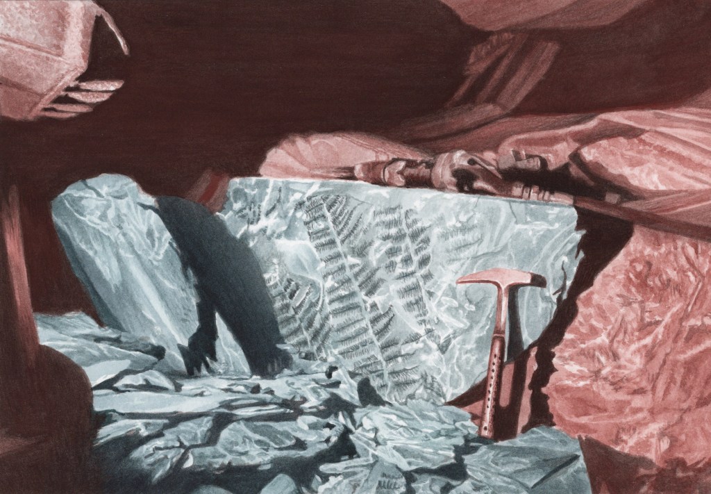 Cette série d’aquarelles, intitulée Exhumer les forêts, propose un voyage pictural à travers un double passé forestier : celui du Carbonifère, révélé par les fossiles découverts lors de l’exploitation minière, et celui de la forêt exploitée pour soutenir les galeries. Aujourd’hui, la renaissance de cette forêt se manifeste sur les terrils, véritables sanctuaires de biodiversité. Ma série se structurera en trois volets : la forêt carbonifère, l’exploitation souterraine et la reconquête végétale des terrils.