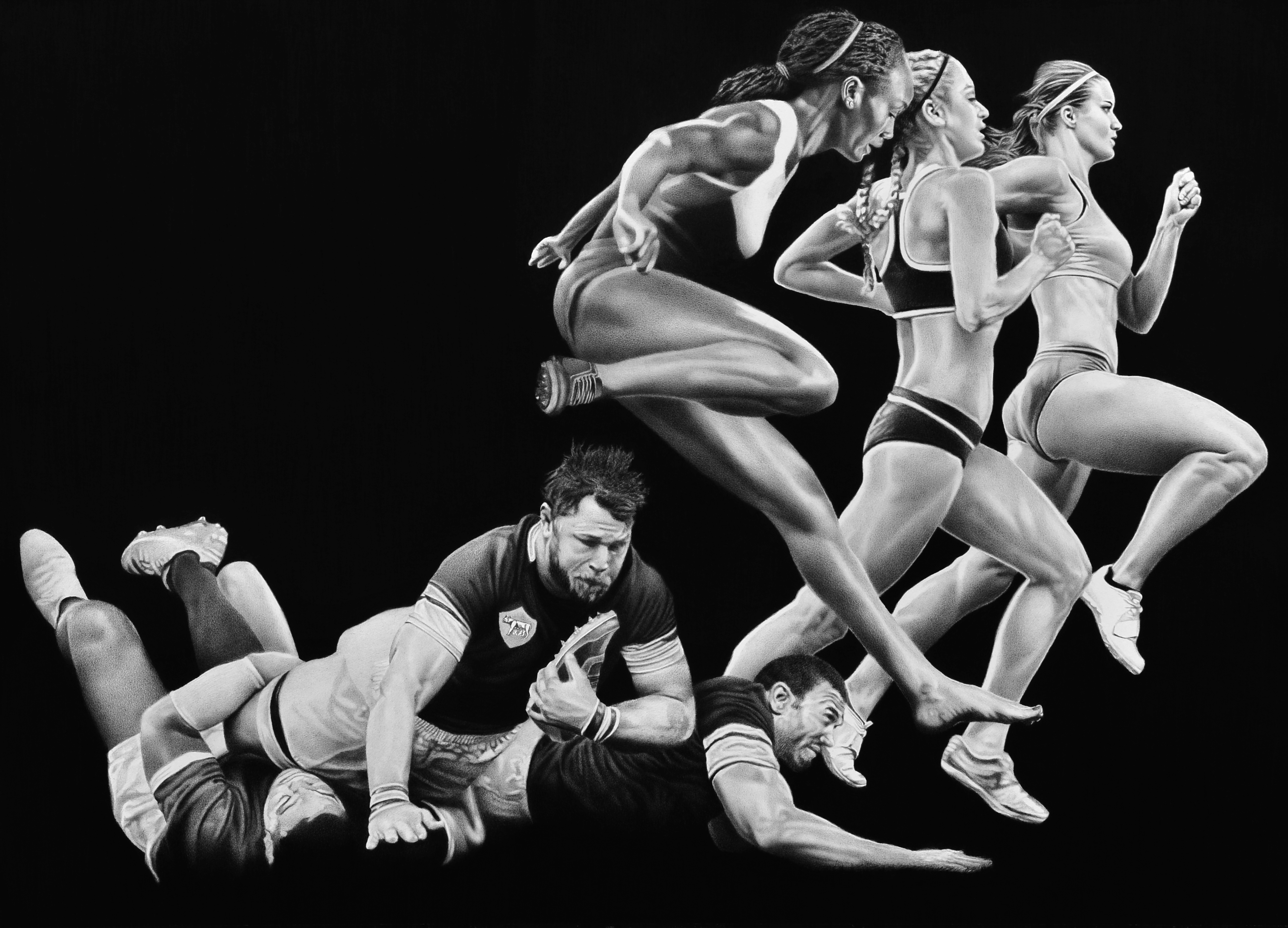 Autodéfense des Sabines, crayon graphite sur papier, 50×70 cm, 2022, Courtesy HGallery Paris