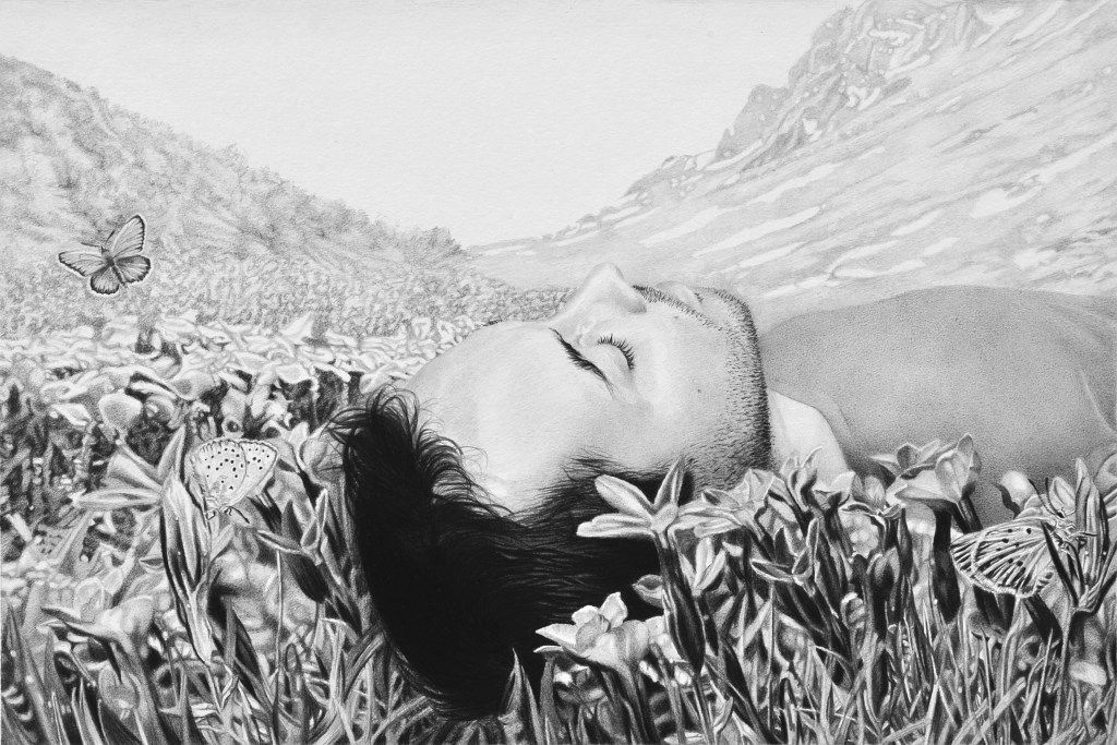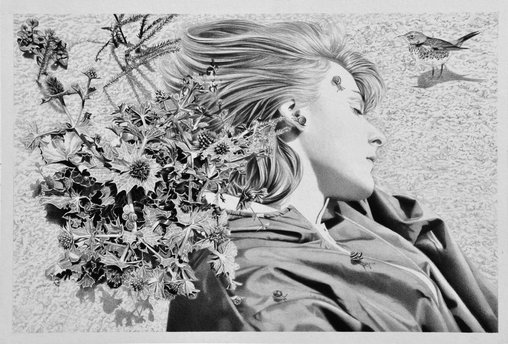 En 2020, lors du premier confinement, comme beaucoup de personnes, j’étais à l’écoute des nouvelles du monde par le biais de la radio. Des témoignages racontaient que dans les villes désertées pas les humains, la flore et la faune venait investir tranquillement les lieux. Alors, je me suis mise à imaginer des humains endormis auprès desquels les plantes et les animaux viendraient vivre en symbiose ou en interaction sans ne plus avoir à se cacher des animaux hyperactifs et expansionnistes que nous sommes.