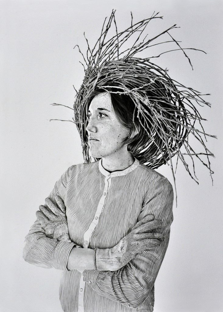 Leur apparence, proche de la photographie, simule leur existence présumée, bien qu’en regardant de très près, le dessin s’écarte légèrement du grain photo pour suggérer des paysages. Le crayon graphite permet d’affirmer les aspérités qui couvrent leur corps, comme s’ils étaient des êtres vivants en symbiose avec des micro-organismes. La surface de leur peau est un prolongement du paysage dans lequel ils évoluent. Leurs attitudes rappellent parfois celles des portraits de l’histoire de l’art qui m’ont marqué. Le testament de l’art serait-il ce qu’il me reste d’ancestralité active ?
