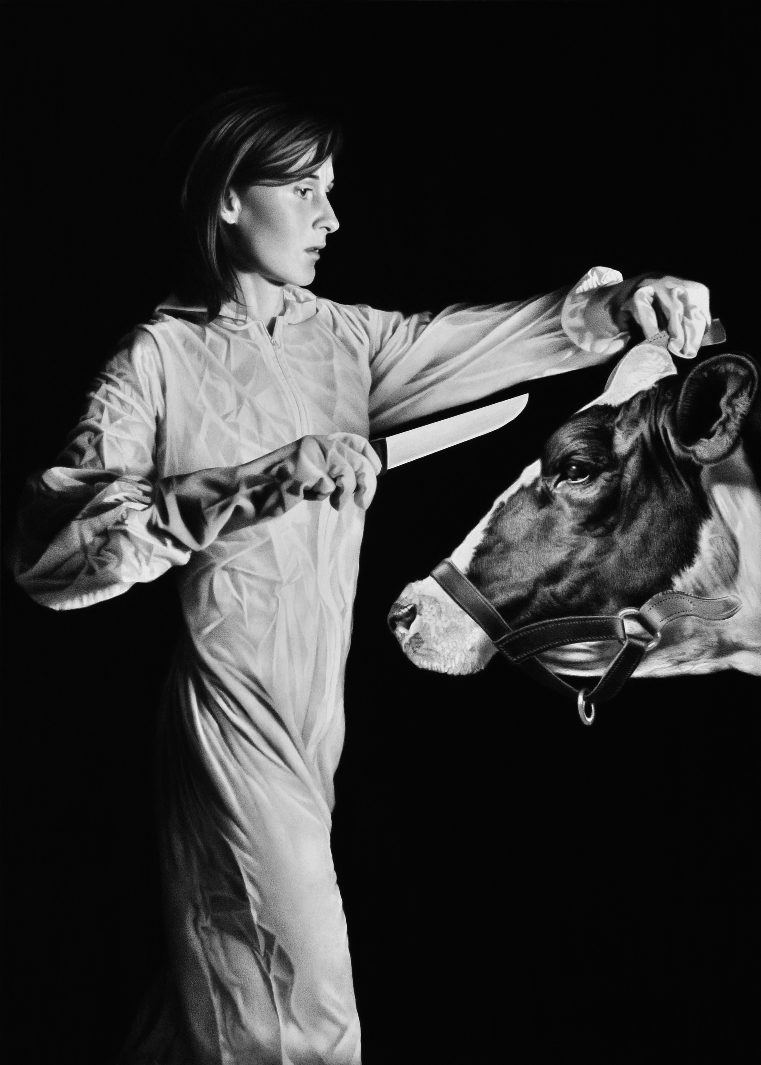 Le travail de Maryline Terrier se présente à première vue comme une œuvre d’apparence classique sous la forme de dessins au crayon graphite sur papier ou de tableaux de peinture à l’huile sur bois avec des techniques qui respectent celles de la tradition. En outre, elle fait de très nombreuses références à l’histoire de l’art. L’artiste fait aussi des allusions très marquées à notre époque et son actualité. Bien au-delà de la parfaite maîtrise de son médium, elle inscrit sa démarche dans une orientation ouverte et le regard aigu qu’elle porte sur la société soulève bon nombre de questions et apporte des pistes de réflexions. Puisqu’une œuvre revêt toujours un caractère polysémique et reçoit plusieurs interprétations qui peuvent être lues de multiples manières, chacun y projetant ses désirs et la signification qui lui semble la plus adéquate, Maryline Terrier parsème d’indices l’approche que l’on peut donner à ses pièces mais nous laisse la liberté de les appréhender selon notre sensibilité.